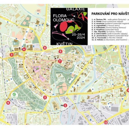 Ze všech těchto parkovišť je Výstaviště Flora Olomouc dostupné pěšky anebo přes linky MHD.