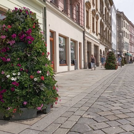 Více než dva tisíce květin v 16 květinových pyramidách zdobí od konce minulého týdne centrum města Olomouce. Zahradníci z Výstaviště Flora Olomouc je osázeli směsí balkónových květin. Během následujících 14 dnů naplno rozkvetou.