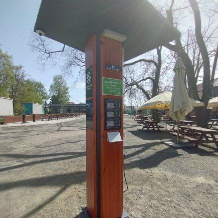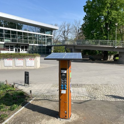 Dřevem obložený cyklostojan funguje na solární energii, pro případ nepříznivého počasí je připraven záložní zdroj. Návštěvníkům parků i akcí v areálu Výstaviště Flora Olomouc budou k dispozici zásuvky na 230 V a 12V, USB porty, držáky na telefony a tablety a také kompresor na dohuštění pneumatik jejich (elektro)kol a nářadí na drobné opravy.