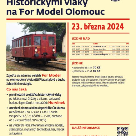 „For Model patří mezi neoblíbenější akce, které na Výstavišti Flora Olomouc pořádáme. Díky naší spolupráci s desítkami sběratelů a modelářů se návštěvníci mohou opět těšit na tři dny plné zážitků. Mám radost, že se i letos na tuto akci hlásí modeláři, kteří se doposud na výstavě For Model svými díly nepochlubili. Veřejnosti tak představíme exponáty, které v minulých letech neměli možnost vidět,“ uvedla Eva Fuglíčková, ředitelka Výstaviště Flora Olomouc.
