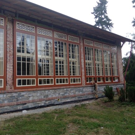 - Repliky historických oken, které jsou vsazeny do hlavních rámů z modřínového dřeva, jsou dle původní předlohy zasklívány šupinkovitě, tedy technikou překládání kousků skel přes sebe – nejstarší budova olomouckých parků tak opět získá původní podobu, díky níž byla v 19. století dokladem parkové architektury v Olomouci.