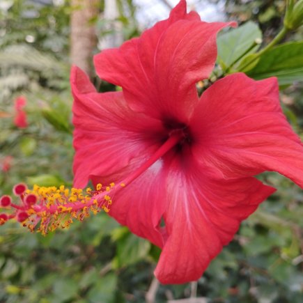 Navzdory pošmournému zimnímu počasí se lidé ve sklenících mohou potěšit pohledem na zářivé barvy kvetoucích exotických rostlin. V palmovém skleníku jsou mimo jiné k vidění oranžové květy strelície královské, jež roste nedaleko majestátního datlovníku. Za pozornost pak stojí i květy bouganvílee a ibišků.
