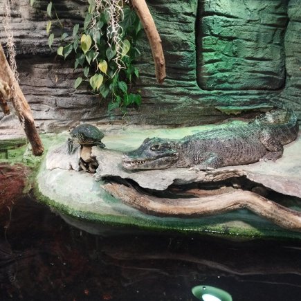 „Největší oblibě se u našich návštěvníků těší obyvatel akvaterária – kajman žakare, který zde žije s želvami nádhernými a jinými sladkovodními rybami, z nichž díky své velikosti zaujme letitá piraňa rostlinožravá,“ uvedl Pavel Souček, vedoucí oddělení sbírkových skleníků na Výstavišti Flora Olomouc.