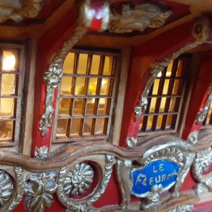 Propracovanému modelu francouzské plachetnice Le Fleuron z 18. století věnoval Petr Šebesta zhruba tři tisíce hodin času, na třicet kilogramů těžké lodi tak nechybí ani funkční kanony, zlacené zdobení, osvětlení kajuty či dobový nábytek.