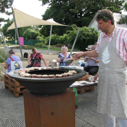 Ředitel Výstaviště Flora Olomouc se ujal role hostitele s maximální důsledností - osobně totiž připravil pro návštěvu také grilované dobroty na jednom ze zahradních grilů, které nově slouží zájemcům v rozáriu i sousední botanické zahradě. Nejprve však neopomněl vzácné hosty přivítat a poděkovat také městu a jeho nejvyššímu představiteli: „Nebýt pana primátora a podpory města, tak bychom se dnes nepotkali v tomto krásném prostoru, ale v zanedbané zahradě,“ vyzdvihl mimo jiné význam proběhlé rekonstrukce Jiří Uhlíř.