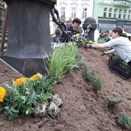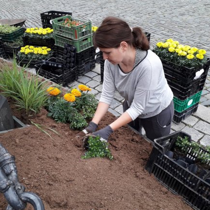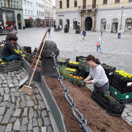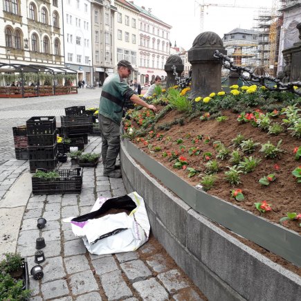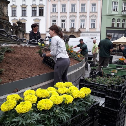Šli jste tento týden po Horním náměstí a říkali jste si, co se to tam děje? Pustili jsme se do květinové výzdoby. Sloup Nejsvětější Trojice bude osázen letničkami, které budou tvořit klasické barokní ornamenty. Těšit se můžete na krásné barvy afrikánů, begónií, hlazenců (Cuphea), pestrovek (Gomphrena) či trav. Květinová expozice je realizována pod taktovkou uznávané české floristky Pavlíny Švecové jejíž tvorbu znáte i z výstav Flora.