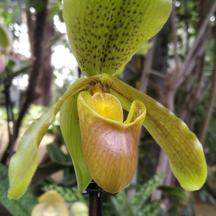 Součástí expozice je také rostlina vanilky, jde totiž o liánovitou orchidej, a také pozoruhodné střevíčníky rodu Paphiopedilum kvetoucí velkými, nápadnými květy s charakteristickým bačkůrkovitým pyskem.