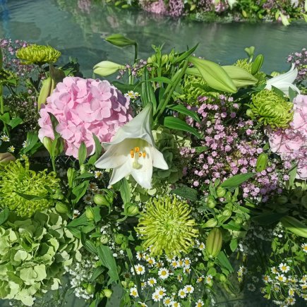 Floristické aranžmá tvoří 1850 květin, mezi nimi lze najít gladioly, nevěstin závoj, hortenzie, lilie, chryzantémy, alstromerie či heřmánek. Aranžmá ztvárňuje královskou korun královského města Olomouce, další květiny pak symbolizují drahé kameny.