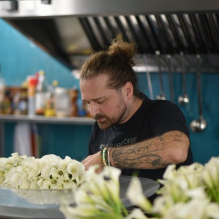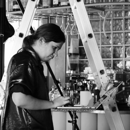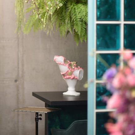 „Fotilo se ve velmi specifickém prostoru, kde se různými technikami barví květy. Jde o veřejně nepřístupné místo, které však působí velmi efektně. Druhé focení se uskutečnilo v říjnu 2024 na Slovensku v Nitře v restauraci Tri kvety, jejíž design jsem vytvořil,“ prozrazuje Robert Bartolen.